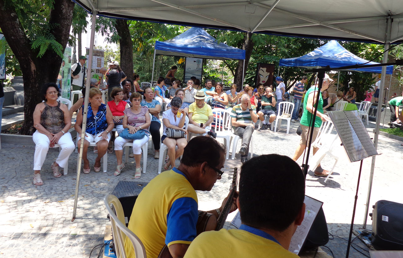 Choro na Praça no Domingo Alternativo do Sesc Tijuca O grupo Choro na Praça animou o Domingo Alternativo do Sesc Tijuca, no dia 8 de junho. O mestre Jacob do Bandolim, cuja morte completa 35 anos em agosto, e o genial flautista e compositor Altamiro Carrilho, que faria 90 anos em dezembro, foram homenageados, mas o repertório do show também contou com clássicos do choro de outros expoentes do gênero como Pixinguinha, Ernesto Nazareth e Waldir Azevedo. |