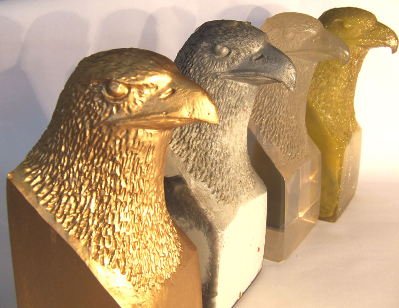 Troféus de águias ouro brilhante ou fosco, branco/prata, transparente e purpurina |