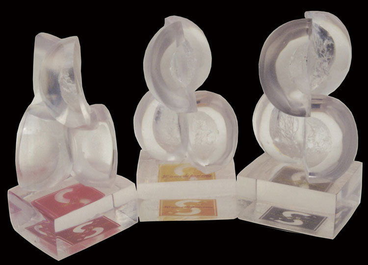 Sanoli Escultura esférica representando a logomarca da empresa para premiação a funcionários que completam 20 anos(bronze), 25 anos (prata), 30 anos (ouro) e 35 anos (azul) clique para ver vídeo deste troféu em produção